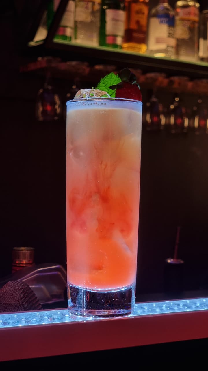 TEQUILA WHITE, PASSION SYRUP, LEMON, TOP WITH SODA